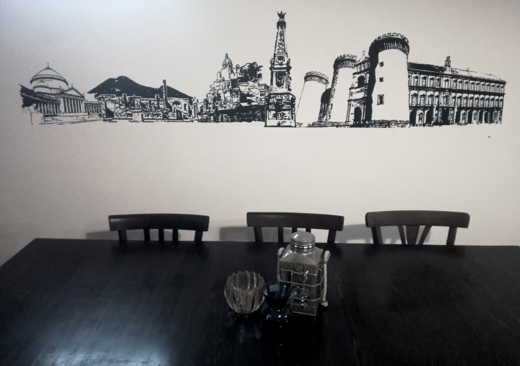 Composizione di monumenti stilizzati della città di Napoli e dintori.